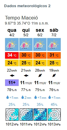 Pictograma Temperatura (máx.) Temperatura: (mín.) Velocidade do vento Direção do vento Índice - UV Humidade relativa Precipitação Probabilidade de precipitação rainSPOT Pressão