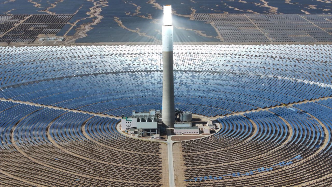Em 2007, lendo uma revista da superinteressante vi um projeto como esses onde a luz solar inside sobre espelhos e aquecem reservatórios de água onde a água evapora e em cima, faz girar as élices com motores (geradores de energia) na Espanha. Essa imagem parece que é na China.